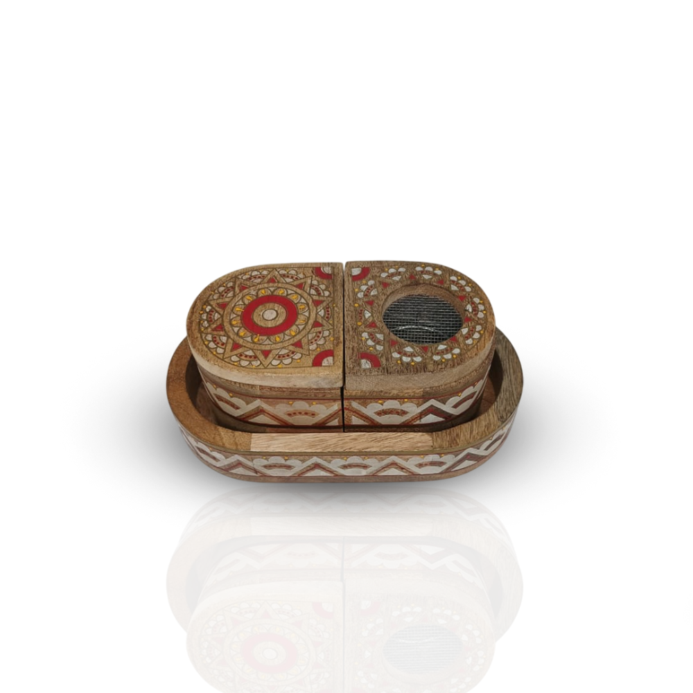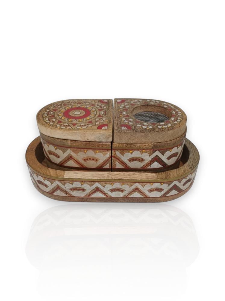طقم مبخرة خشبي شكل بيضاوي