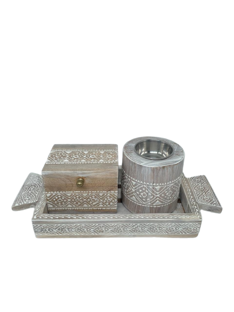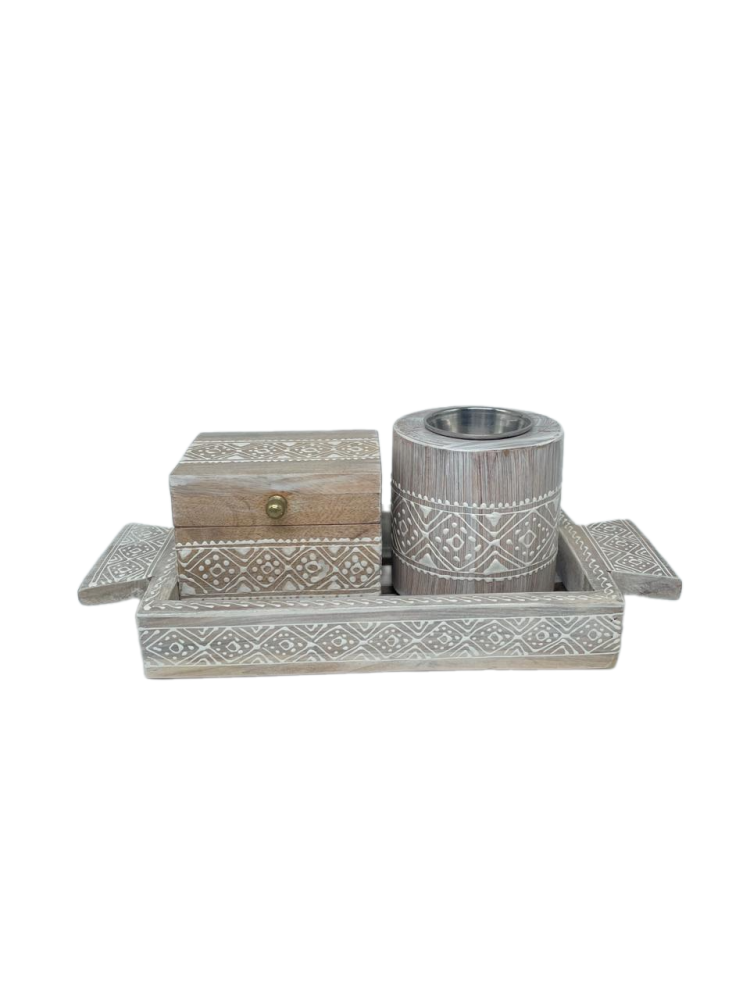 - نوع المنتج: طقم مبخره خشب يدوي الصنع